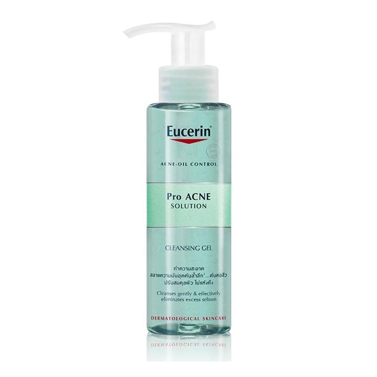 Eucerin ProAcne Cleasing Gel là gel rửa mặt hàng ngày, không chứa xà phòng và không hương liệu. Sản phẩm được nghiên cứu da liễu lâm sàng trên các đối tượng da nhờn hoặc da dễ nổi mụn, chứa nhiều thành phần giảm sự hoạt động của các loại khuẩn gây mụn, cho thấy hiệu quả cao và khả năng dung nạp tốt.